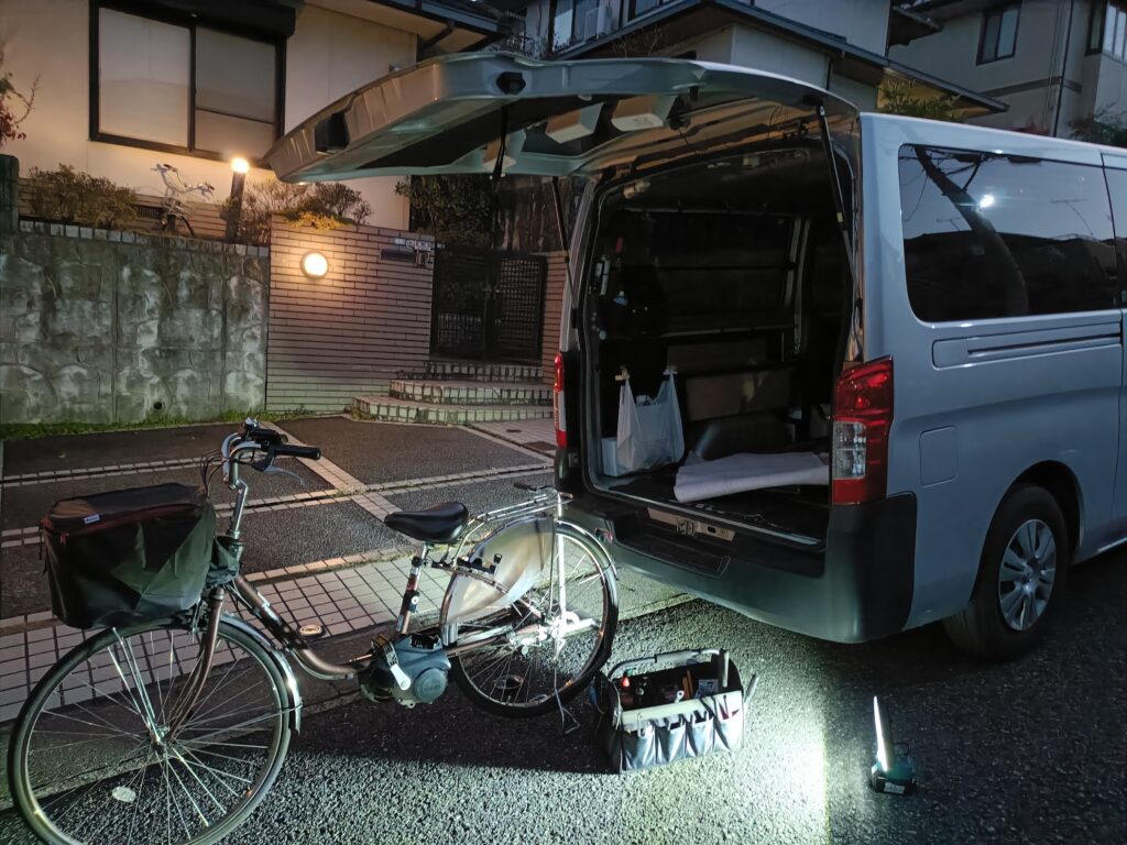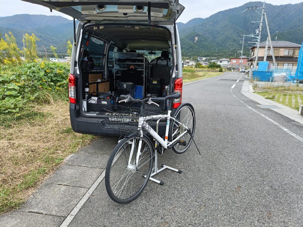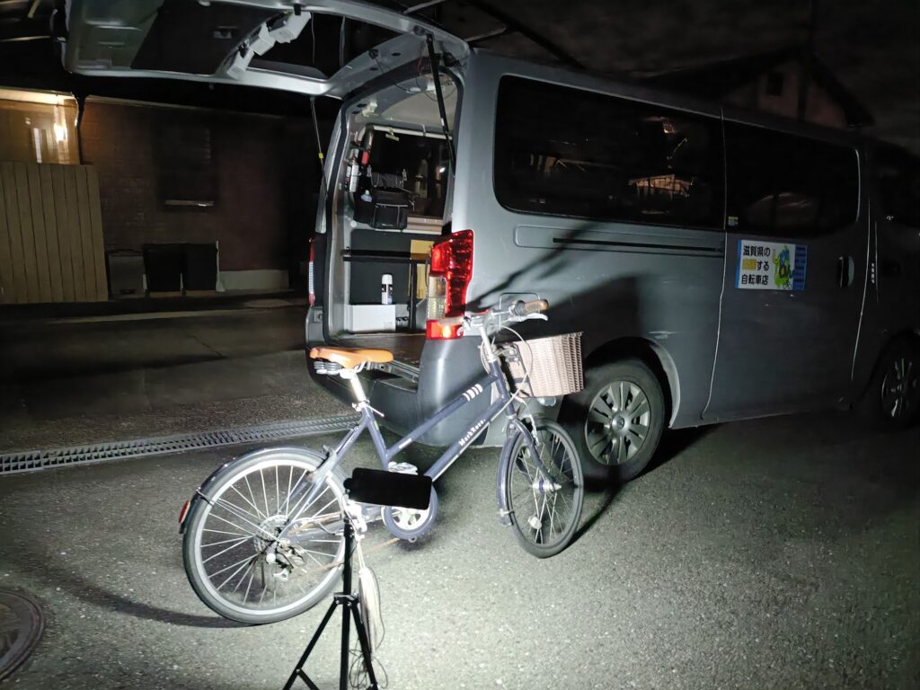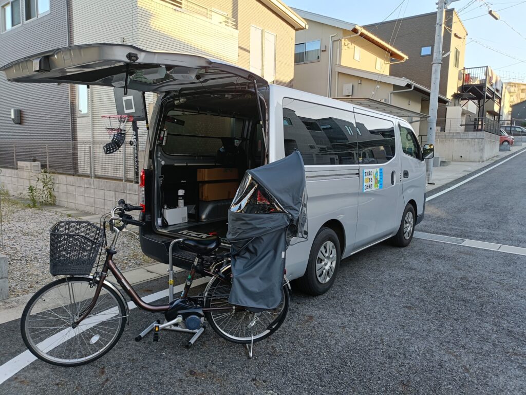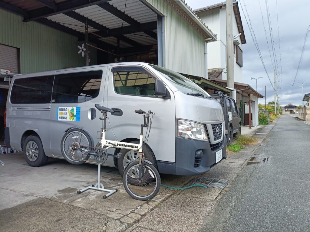 大津市瀬田で2台の修理(電動自転車の同乗器取り外し・電動小径自転車の前後水しらべ)をしました。自転車店の少ない地域でも出張対応できます。カゴや同乗器の取付けなど自転車に関する事でしたらお気軽にご相談ください!