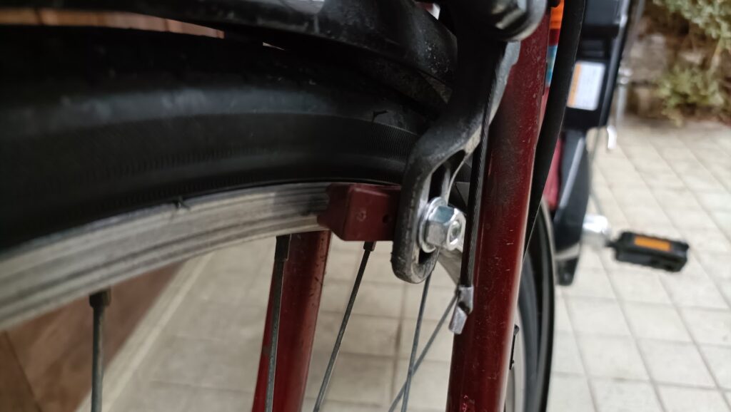大津市朝日が丘で電動自転車の後チューブ交換とブレーキシューの交換修理をしました。パンクやタイヤの修理以外でも基本的に即日出張修理で対応できますので是非ご連絡ください!