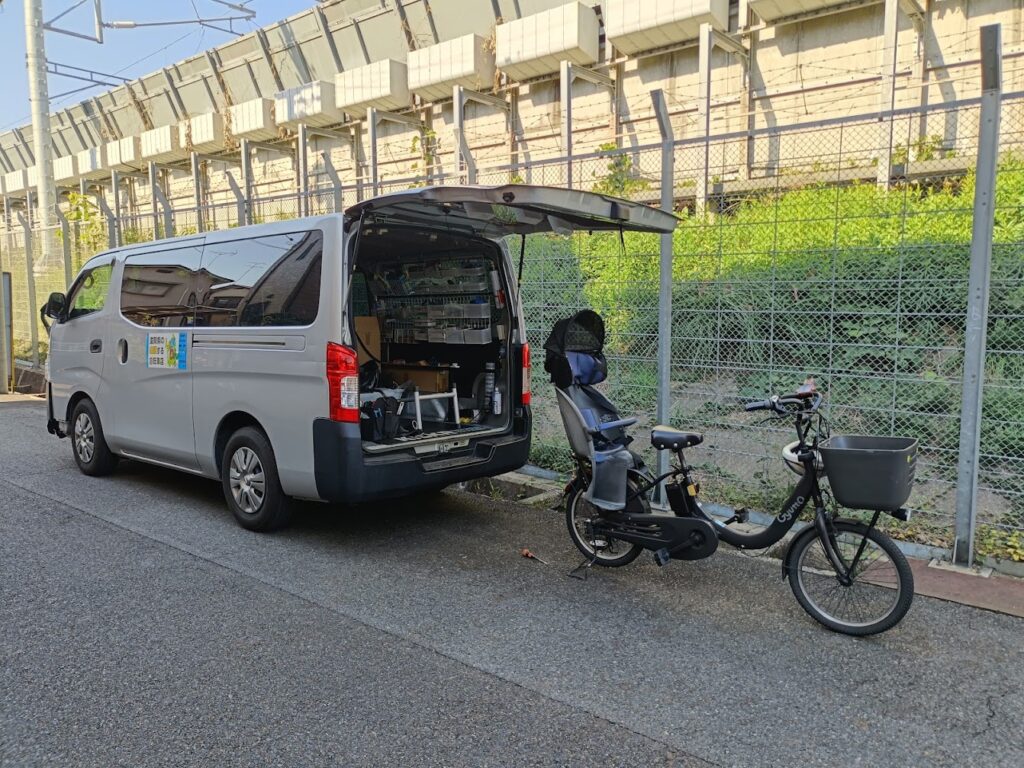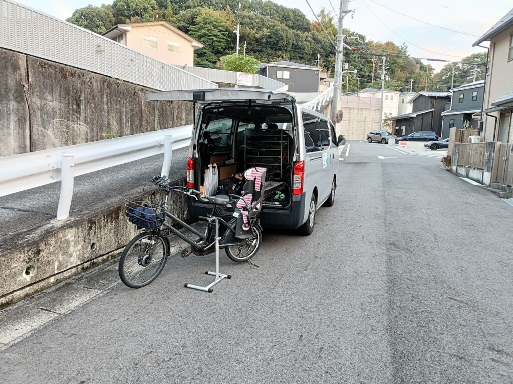 大津市石山寺で電動子供乗せ自転車の後チューブ交換をしました。翌日使うということで朝一番に対応させて頂きました。毎日使われている自転車も可能な限り即日対応または翌朝対応しますのでまずはご相談ください!