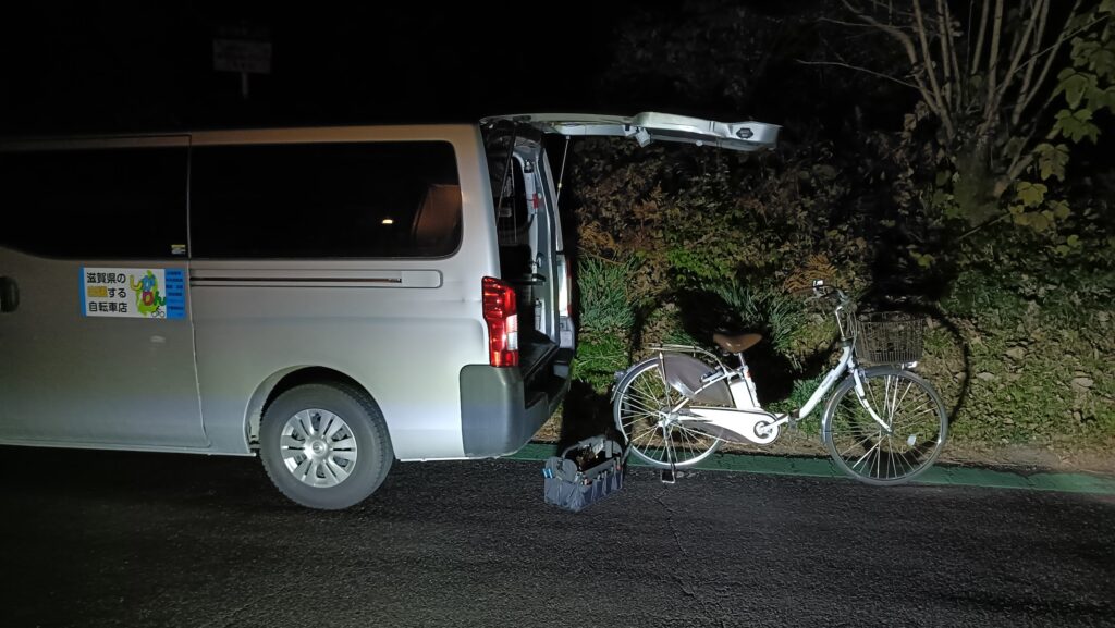 高島市城山台で一般車の後タイヤ&チューブ交換をしました。作業後にはお客様と高島市や湖西地区の魅力について沢山お話しする事ができました。ありがとうございました。電車やバスが少ない地域だからこそ自転車の利便性が際立つと思います。出張修理も頑張っていこうと思います。