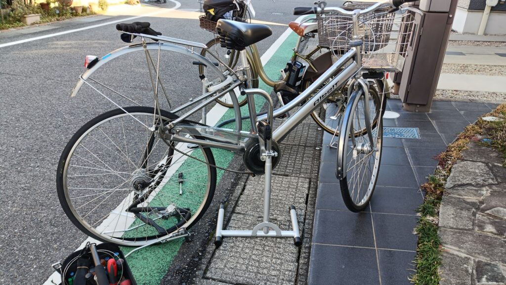 ●4月12日守山市三宅町で一般自転車の前輪パンク修理をしました